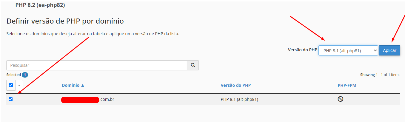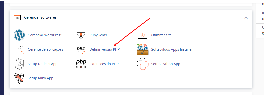 Primeiro entre no cPanel da conta e procure versão PHP: